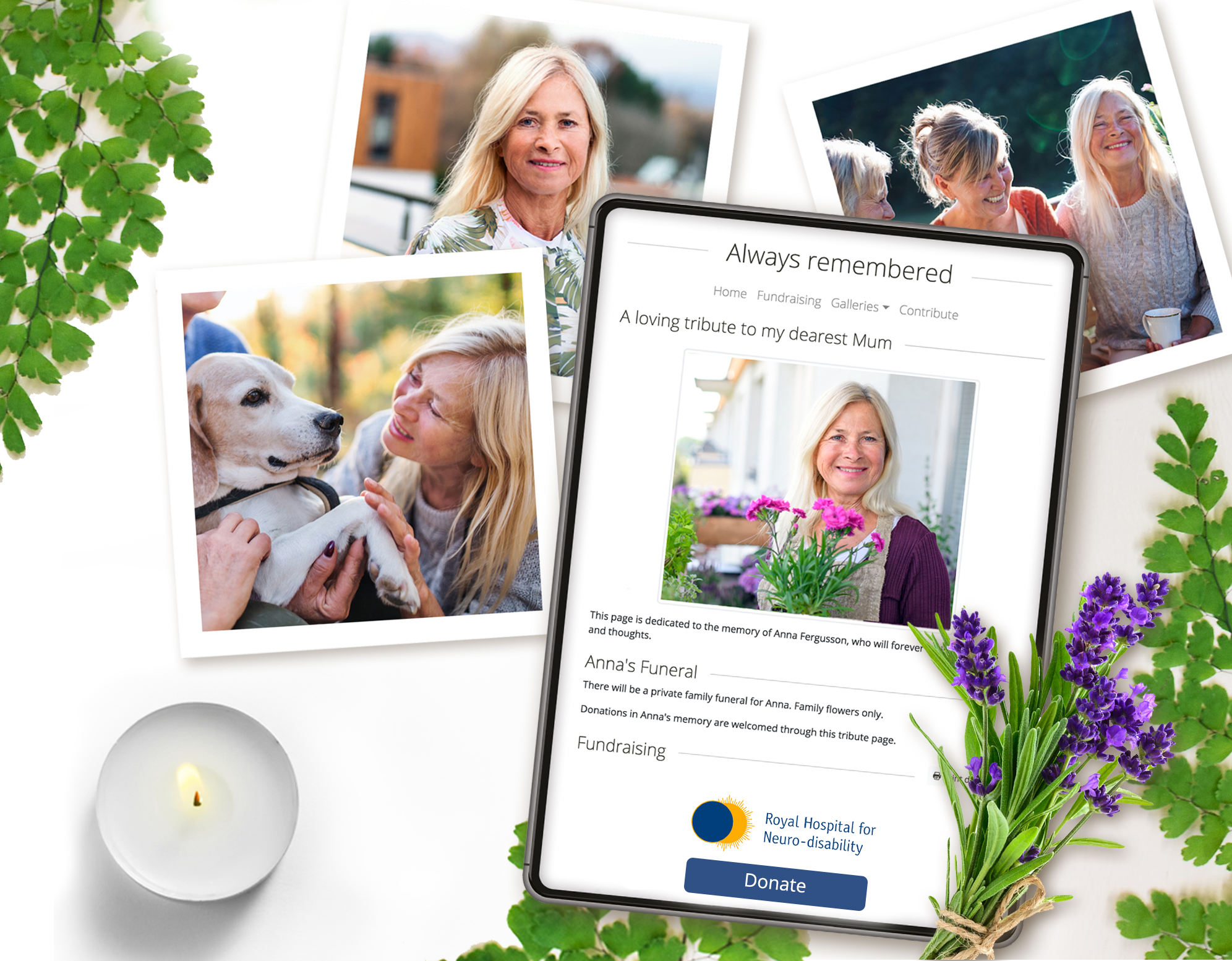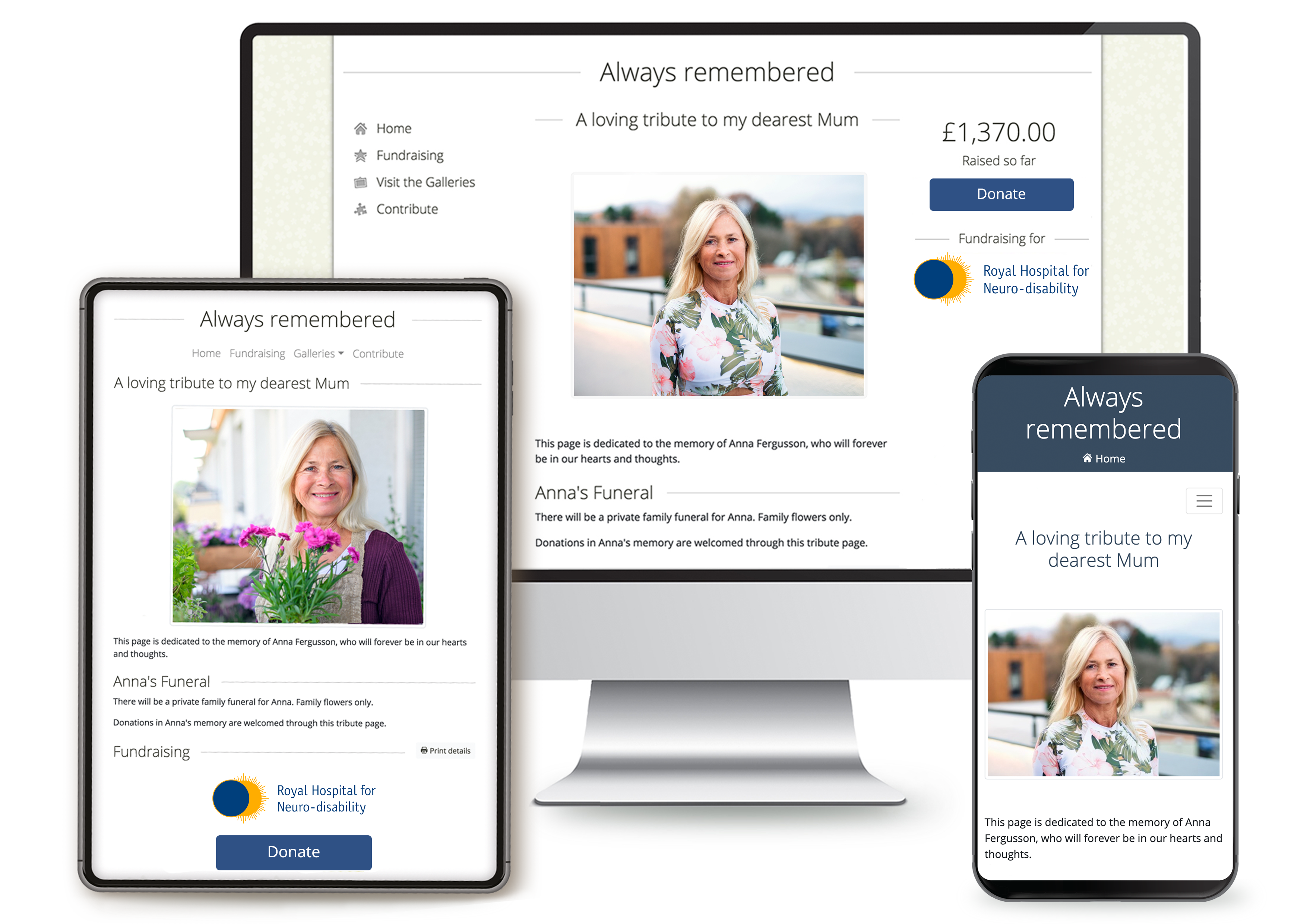 Your loved ones tribute can feature a donation link which sends funds directly to the RHN – tis is particularly popular around special dates like birthdays or anniversaries.